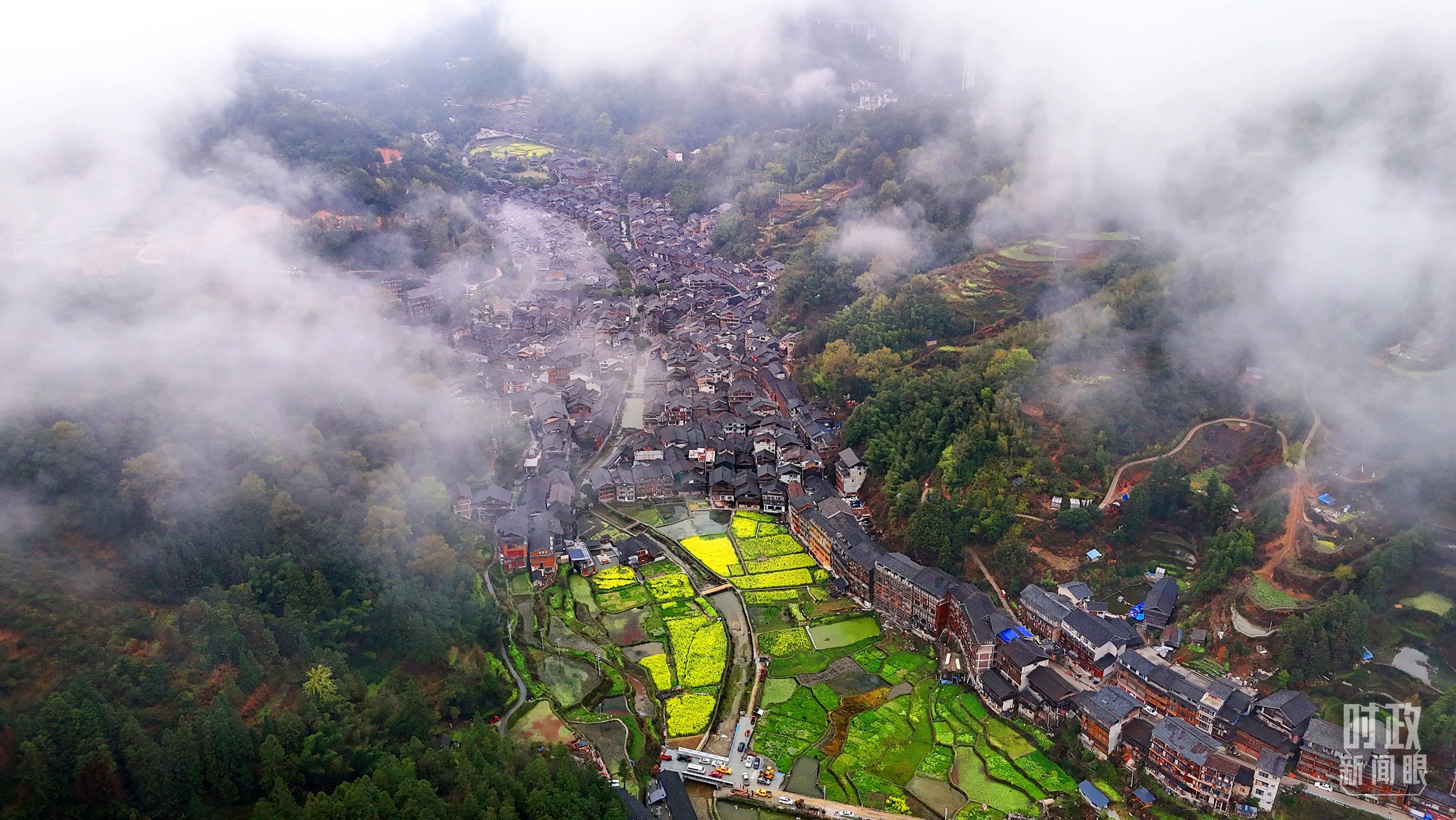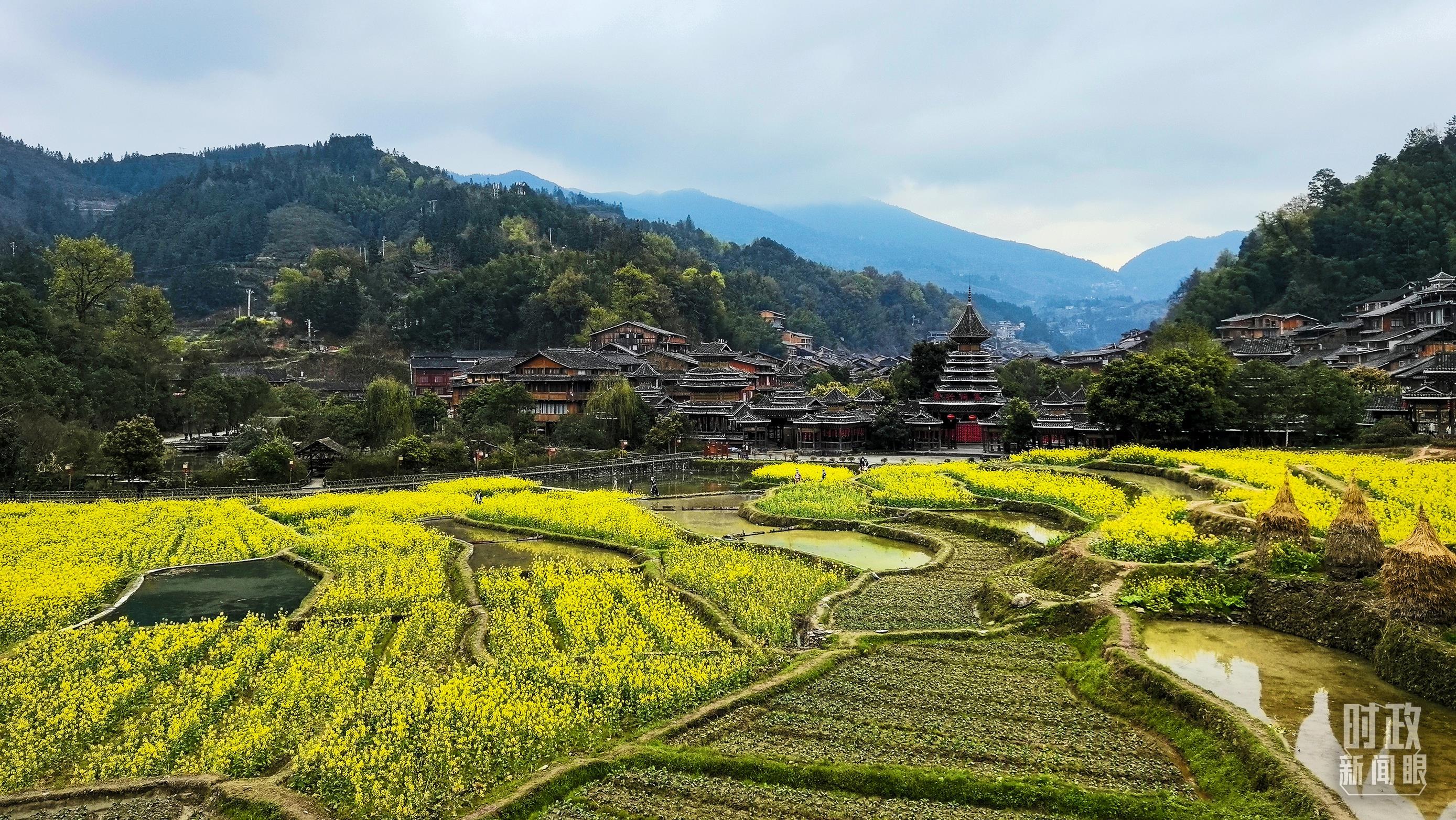 △春日的肇興侗寨,油菜花競相綻放。(總臺央視記者程鋮拍攝)