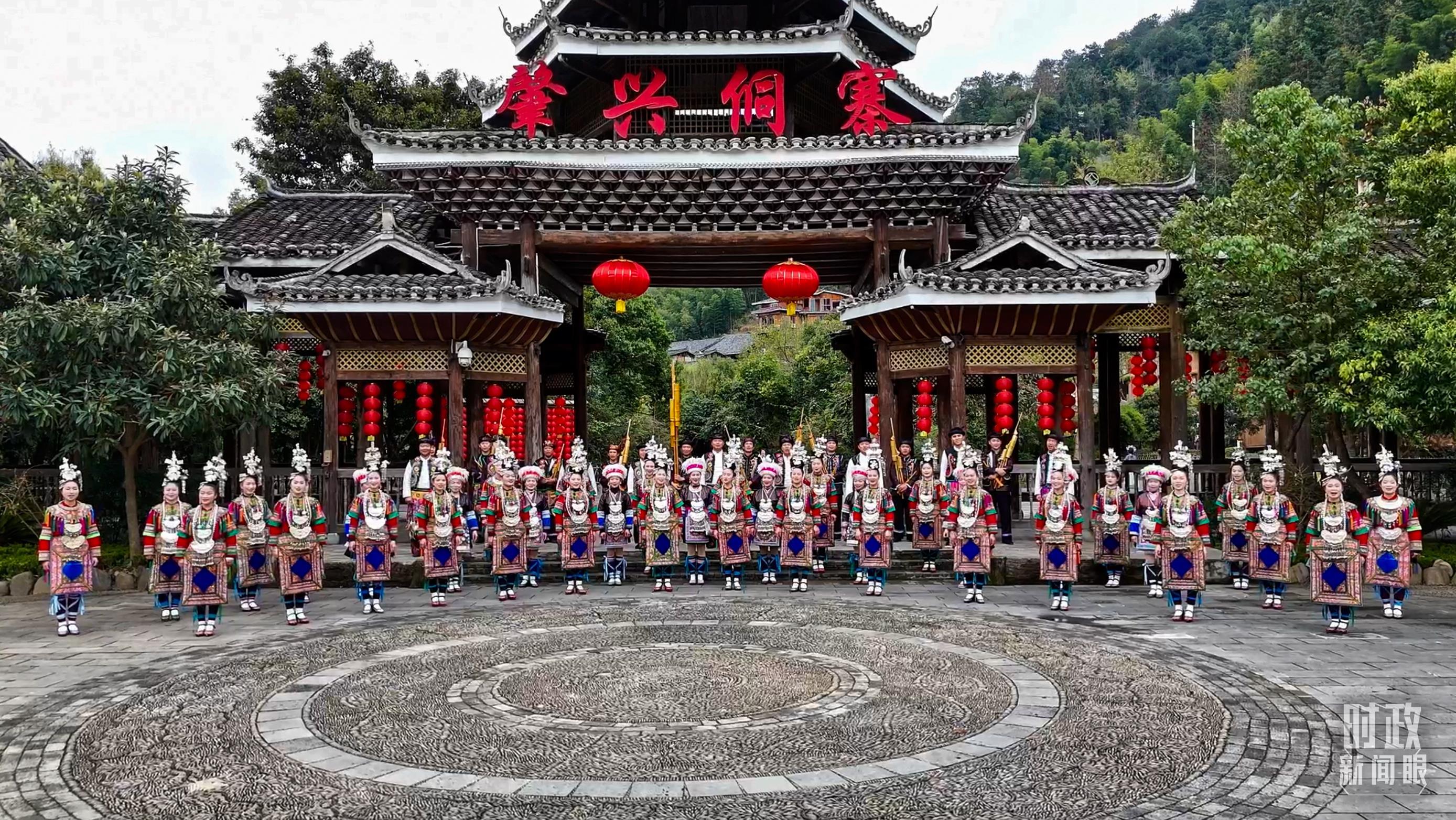 △寨門處,鄉(xiāng)親們身著傳統(tǒng)服飾,唱起侗族大歌,歡迎遠方的來客。(總臺央視記者范凱拍攝)