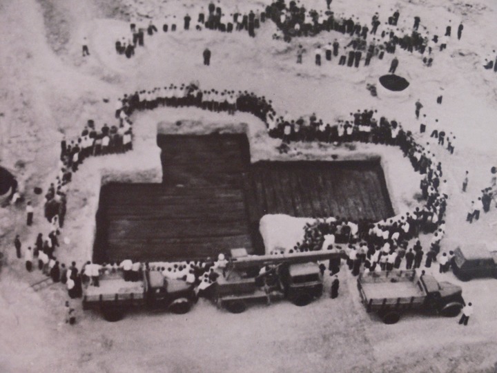 位于曾都區(qū)城西的擂鼓墩是又一處密集分布的戰(zhàn)國(guó)時(shí)期曾國(guó)高等級(jí)貴族墓群,曾侯乙墓就靜靜地躺在這里的一處坡崗上。俯瞰深達(dá)13米的墓葬原址,不規(guī)則多邊形的槨室形制分東、中、北、西四室,由底板、墻板、蓋板共171根巨型長(zhǎng)方梓木和櫸木壘迭套接而成。