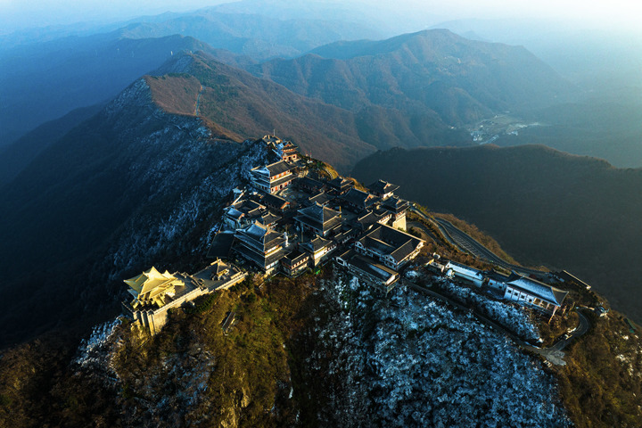 循著山勢(shì)往上,蜿蜒曲折的盤山公路兩邊,層巒疊翠,云海蒸騰,杜鵑灼灼,古木參天。公路盡頭,視野陡然開(kāi)闊,一座佛寺金頂在云霧中若隱若現(xiàn),恍若仙境。寺院入口,雕工精細(xì)的青石門楣上刻著“大慈恩寺”,兩側(cè)是“漢東地闊無(wú)雙院”“楚北天空第一峰”的聯(lián)語(yǔ)。這座寺院與武漢寶通禪寺同源共脈,卻鮮少?gòu)垞P(yáng)。
