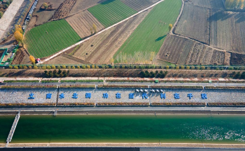 位于京冀交界處的南水北調(diào)中線工程總干渠(2024年11月14日攝,無人機(jī)照片)。 新華社記者 陳鐘昊 攝