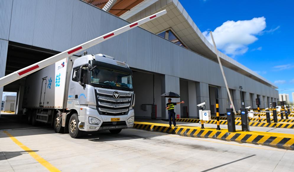 2025年9月17日,離島貨車通過(guò)海口新海港和南港“二線口岸”(貨運(yùn))集中查驗(yàn)場(chǎng),開往港區(qū)。新華社記者 楊冠宇 攝