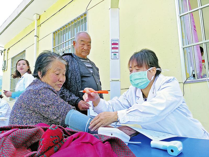 5月26日,洛南縣巡檢鎮(zhèn)衛(wèi)生院組織醫(yī)護人員深入黑彰村,為村里65歲以上老年人、所有貧困戶家庭成員、20歲至64歲婦女以及所有慢病患者進行免費體檢,開展健康扶貧,助力脫貧攻堅。 (記者 王倩攝)