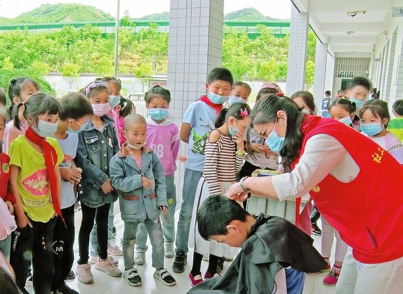 5月27日,市民政局、市慈善協(xié)會等5家單位組織職工在夜村鎮(zhèn)甘河小學舉行慶“六一”關愛兒童活動,向學生送去書包、乒乓球拍和籃球等價值4000多元的學習、體育用品,并為部分學生義務理發(fā)。(記者 王孝竹攝)