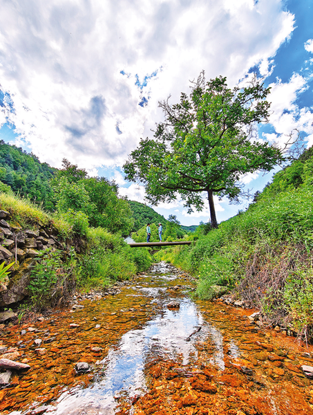 在商州區(qū),驅(qū)車隨意拐進(jìn)一條山溝,水泥路沿途皆是田園美景。小橋流水、煙火人家、白墻灰頂?shù)拿窬印Ⅴr艷欲滴的櫻桃,沉浸其中,讓身心恣意與山風(fēng)、白云、藍(lán)天接觸,回歸山野,享受寧?kù)o帶來(lái)的松弛與快樂。