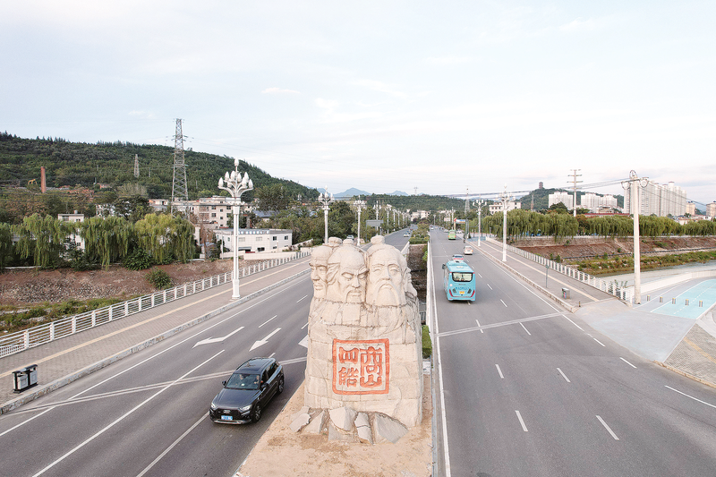 在市中心城區(qū)迎賓大道,古樸莊嚴的商山四皓雕塑巍然矗立,彰顯商洛深厚的文化底蘊。