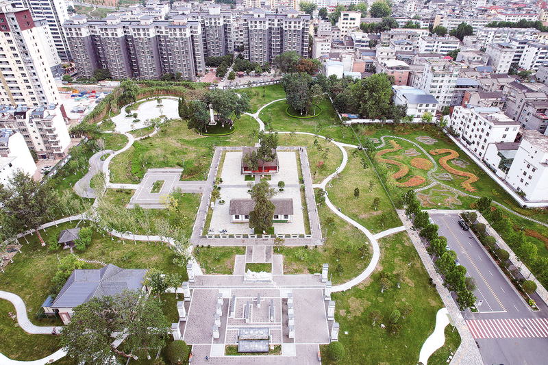 位于市中心城區(qū)的四皓公園,綠草如茵、曲徑通幽,龍形綠植躍然其間,建筑與蔥郁樹木相映成趣,是市民休閑、感受四皓文化的好去處。