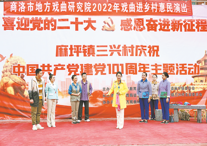 6月29日,市教育局聯(lián)合洛南縣麻坪鎮(zhèn),在三興村舉辦“喜迎黨的二十大·感恩奮進(jìn)新征程”主題活動,表彰了三興村11名模范黨員,為三興村農(nóng)家書屋和小學(xué)捐贈了價(jià)值1.5萬元的圖書,還邀請市戲曲研究院為群眾表演了歌伴舞、秦腔、花鼓小戲等文藝節(jié)目,贏得了大家的陣陣掌聲。 (本報(bào)記者 王 倩 攝)