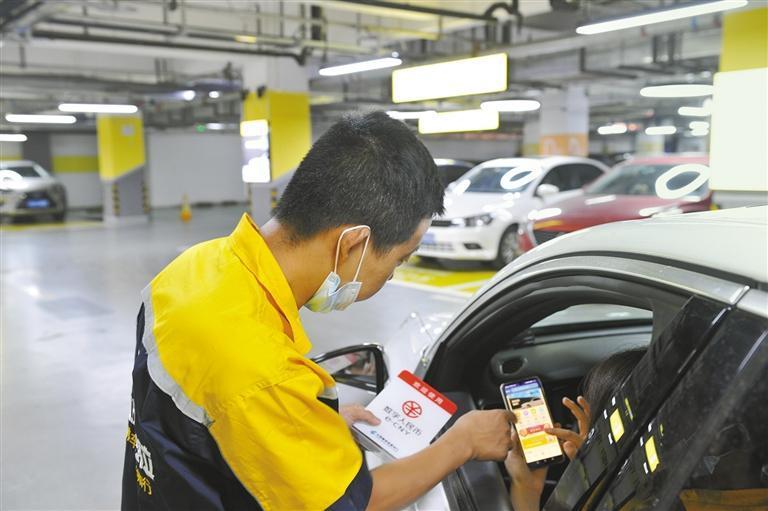 8月20日,西安市民鄧女士在地下停車場工作人員指導下,使用數(shù)字人民幣支付停車費。