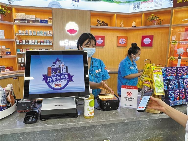 8月24日,西安市民在中石油西安高新加油站使用數(shù)字人民幣支付加油費。
