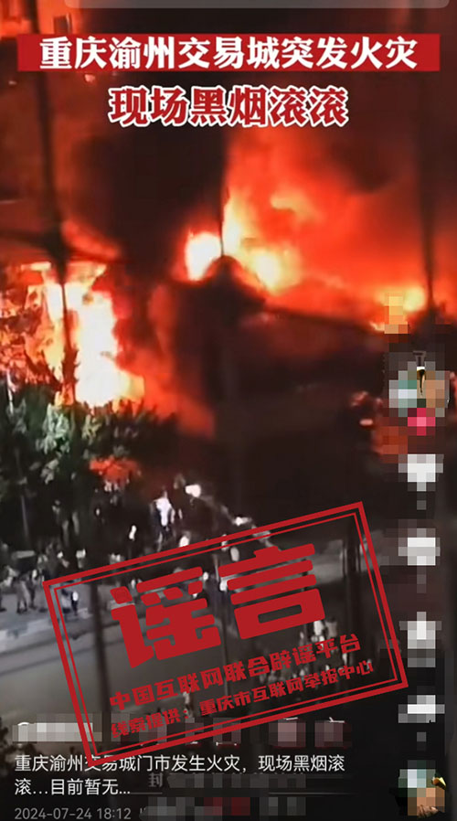 真相:近日,某網民發布視頻稱“重慶渝州交易城突發火災,現場黑煙滾滾”,引發關注。經向重慶市相關部門核實,該視頻畫面為2022年7月3日九龍坡區石橋鋪渝州交易城某門市火情,當時并未造成人員傷亡,網傳信息不實,系舊聞炒作。該片區域早已進行重建及修復,目前,渝州交易城各門市正常經營。(來源:“重慶辟謠”微信公眾號)