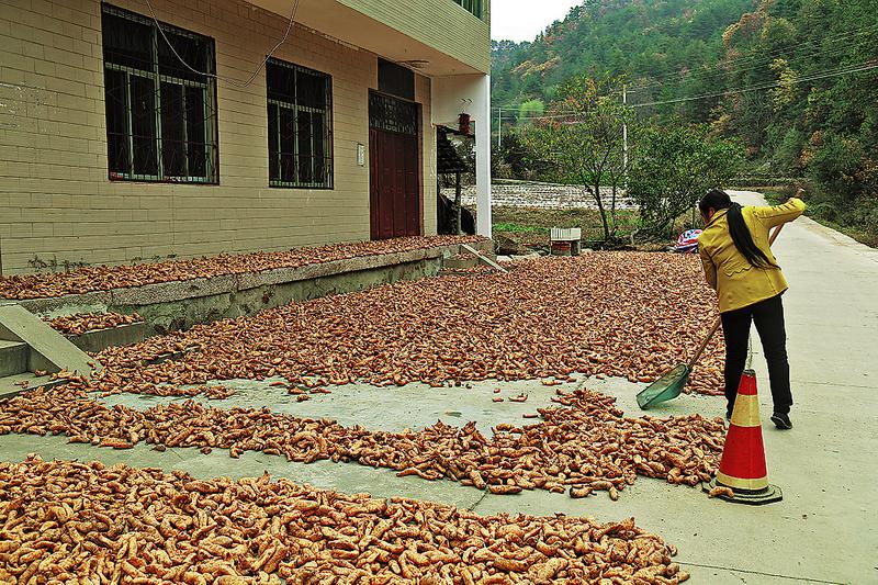 10月23日,在丹鳳縣巒莊鎮中南村,48歲的低保貧困戶石太林正忙活著采挖今年種植的3000窩天麻。石太林高興地說:“今年豐收了,我今年的天麻收成大概在四五千斤,每斤收入8塊多錢,今年大概收入四萬元左右,脫貧不成問題……”