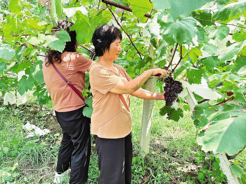 8月15日,在丹鳳縣萬灣村萬香灣無籽藍玫瑰葡萄采摘園內,村民忙著將葡萄采摘、裝箱。據了解,該采摘園種植了無籽藍玫瑰葡萄和龍眼葡萄兩個品種,種植面積18畝,可產15噸葡萄,年收入30萬元,帶動周邊20多名群眾就近就業。(記者 方方 攝)