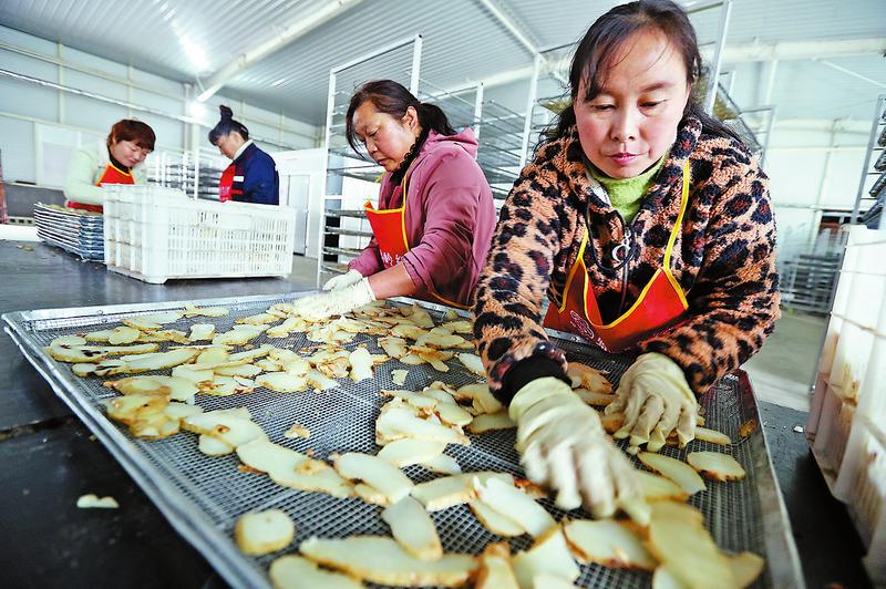 在丹鳳縣良種天麻產(chǎn)業(yè)園,一輛輛滿載天麻的卡車開入園區(qū),工人們卸下一袋袋“土黃金”送入天麻產(chǎn)品加工車間。在成品車間,只見藥用天麻切片、天麻掛面、精細(xì)天麻粉和天麻酒等系列深加工產(chǎn)品放滿車間。