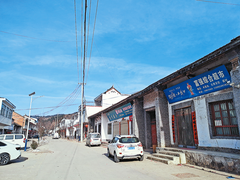 穿過一段狹窄的山谷,地勢漸漸開闊起來,漂亮的磚混結構民居依山向陽而建,門前是大片平展展的耕地,不多時爬上一處陡坡,鉆過一方樓門,來到塔爾坪村黨群服務中心。