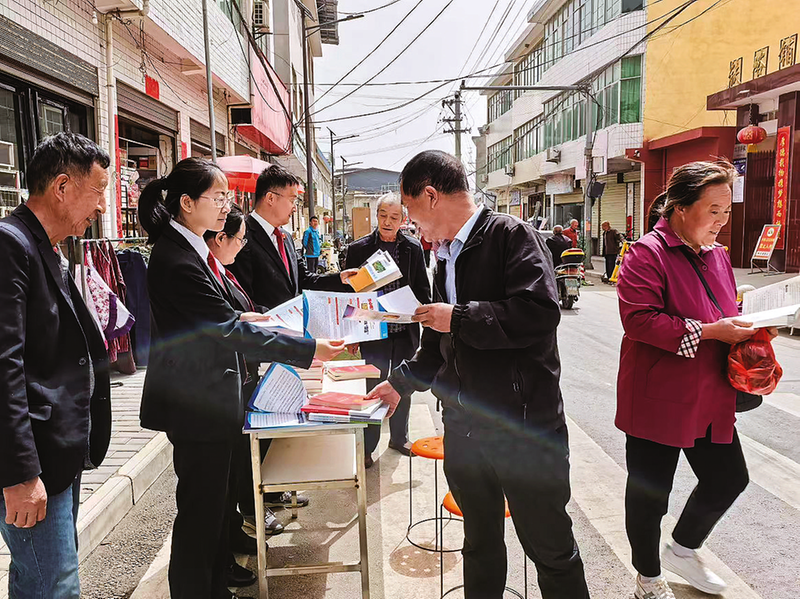 11月28日,丹鳳縣人民法院鐵峪鋪法庭干警在鐵峪鋪鎮中心村開展平安創建“八率一度”宣傳活動,向群眾講解平安創建應知應會知識。