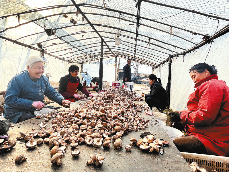 12月18日,在丹鳳縣竹林關鎮張塬村食用菌產業園內,務工群眾正在對新采摘的香菇進行剪柄晾曬。據了解,竹林關鎮穩步擴大特色產業規模,今年發展食用菌243萬袋,帶動180多名群眾實現季節性靈活就業。 (本報通訊員 王 蒙 攝)