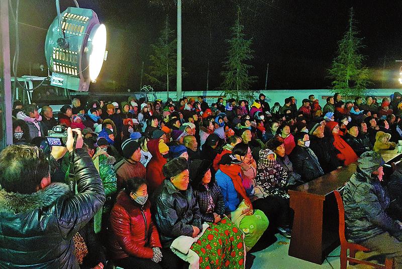 洛南寺耳的群眾冒著嚴寒觀看縣劇團的演出