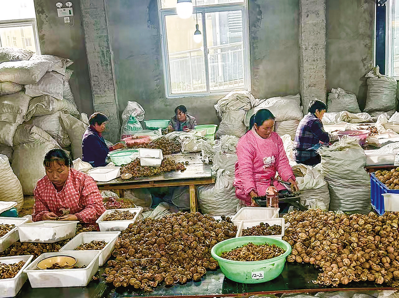 在初加工區,工人正在對核桃進行精細分揀。來自洛源街社區的張彩云手指翻飛,熟練地將核桃按品級分裝。“在這里上班,既學到了技術,又能照顧家里,別提心里有多美了。”她笑著說。這個建在群眾家門口的加工點,目前已穩定帶動60多名當地群眾實現就業增收。