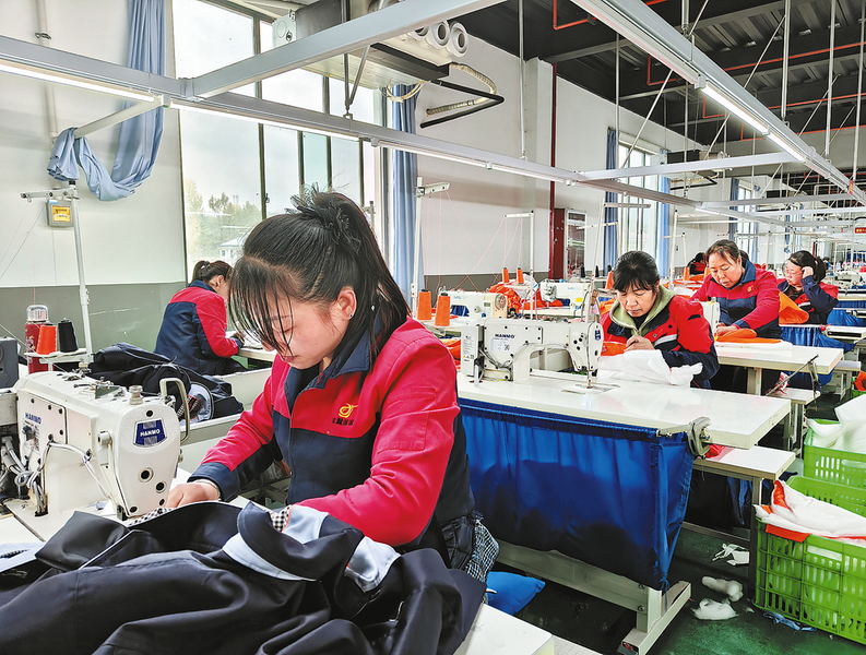 十月二十七日,務(wù)工群眾在洛南縣古城鎮(zhèn)移民搬遷小區(qū)附近的陜西金翼服裝有限責(zé)任公司洛南分公司務(wù)工。近年來,洛南縣通過招引扶持,把社區(qū)工廠建在移民安置點(diǎn)附近,吸納移民搬遷小區(qū)及周邊剩余勞動(dòng)力在家門口就業(yè),實(shí)現(xiàn)群眾顧家增收兩不誤。(本報(bào)通訊員 畢波波 攝)