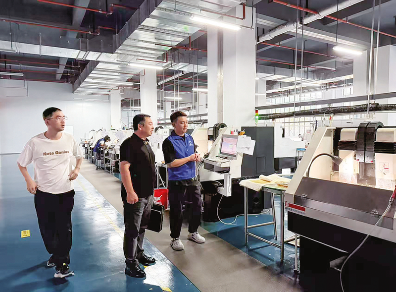 日前,洛南縣人社局工作人員深入商洛經開區億志鑫業電子有限公司開展“人社工作進園區”活動,宣傳人社惠企政策。 (本報通訊員 劉衛鋒 攝)