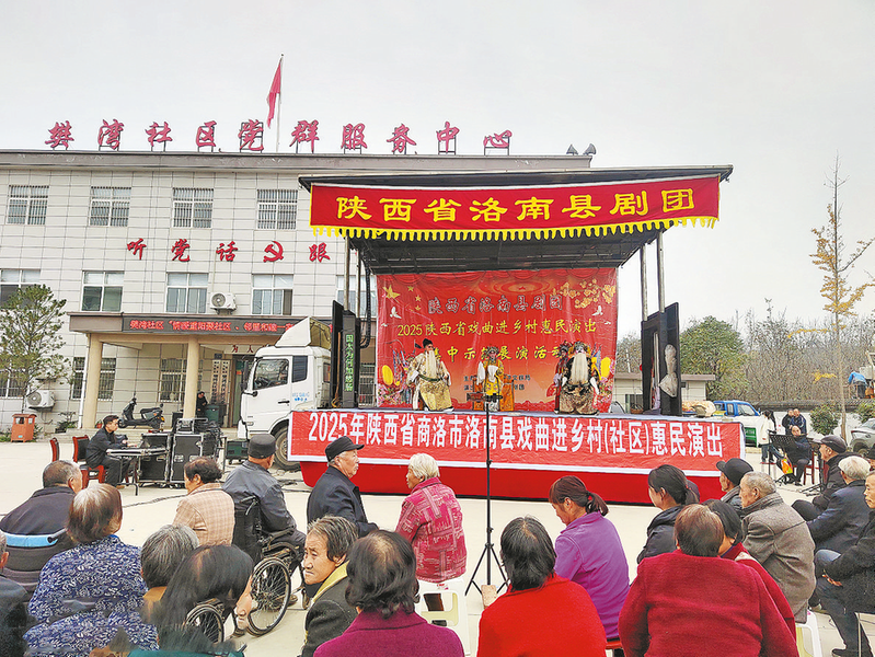 10月29日,洛南縣“戲曲進鄉(xiāng)村”文化演出走進城關(guān)街道樊灣社區(qū)。