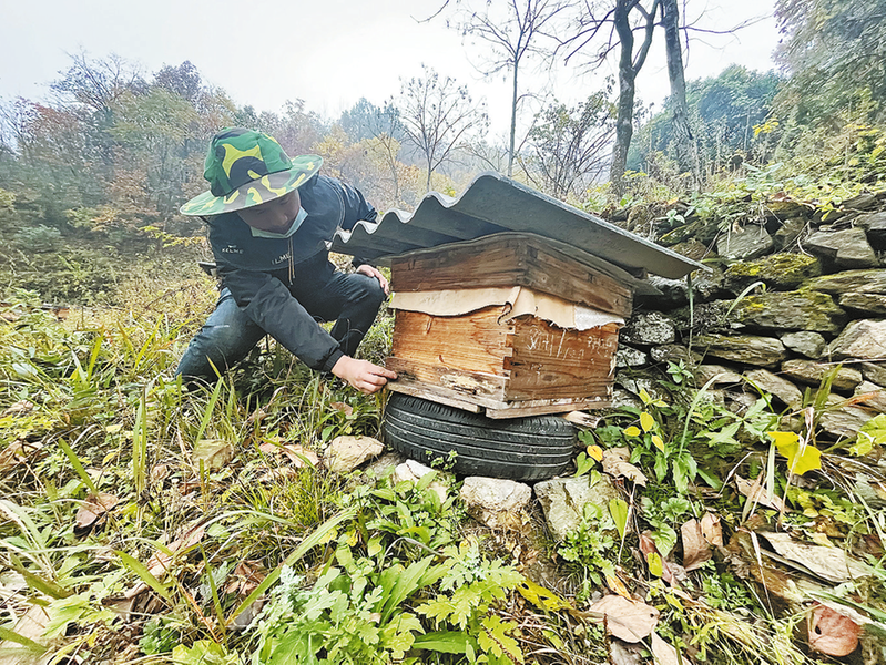 “這是我第3年養蜂了,從一開始的10箱發展到如今的200箱了。”在介紹自己的養蜂經歷時,毛起建眼中有著自豪,他告訴記者,小時候因為學習不好,初中畢業后就去北京打工,當了十多年的“京漂”,見慣了大城市的繁華,他更想念家鄉的碧水青山,在政府的支持與父母的期盼中,他選擇回鄉養中華蜂。