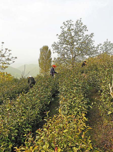 龍鳳山茶葉專業合作社位于紅巖村龍鳳山組,距鎮政府約9公里,該地海拔980米,土地肥沃、雨量充沛,晝夜溫差大,經幫扶單位西安地質調查中心檢驗,這一區域為富硒土地,非常適合發展高山富硒有機茶。合作社充分利用樹種間高差和層間距,采取立體、有機栽植模式,共栽植紅仁核桃1200株,間套富硒茶葉1200畝。目前,合作社年產毛尖650公斤、春茶3000公斤,每年可實現綜合產值160多萬元。
