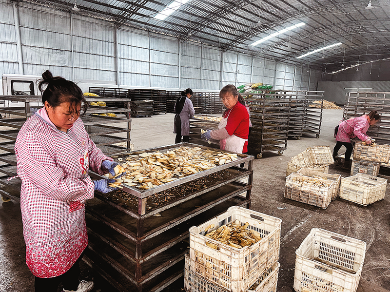 傳明中藥材種植農(nóng)民專(zhuān)業(yè)合作社的天麻切片加工廠內(nèi),工人正在晾曬天麻。