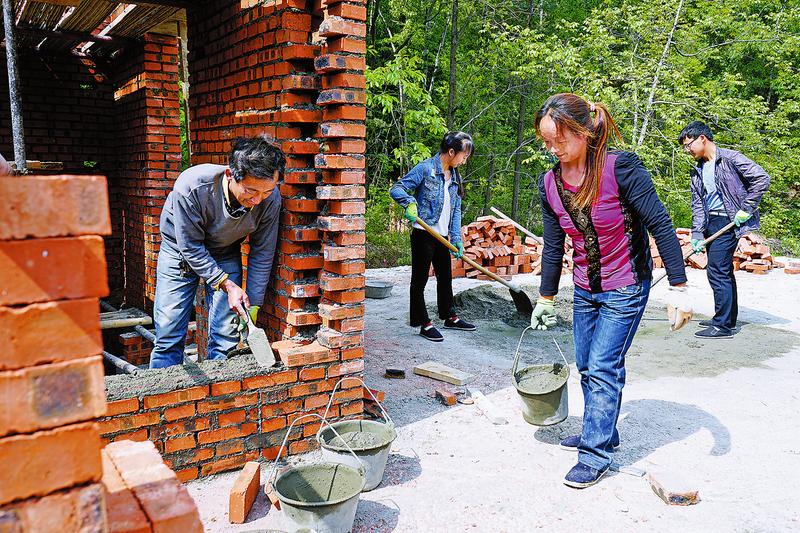 今年“五一”假期,山陽縣高壩店鎮(zhèn)石橋村的程楠、程淼姐弟倆一直和父母一起在工地上干活。5月4日,在石橋村村民王檔云建房工地上,記者看到他們的父親程寶華在嫻熟地砌磚,母親詹金珍提水泥,而程楠則和弟弟在一旁有說有笑地和水泥,一家人其樂融融。