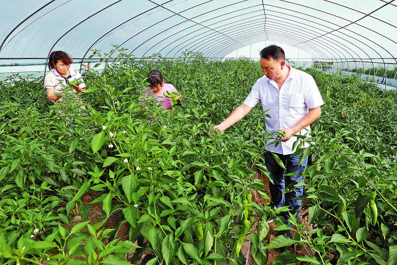 村民在采摘辣椒