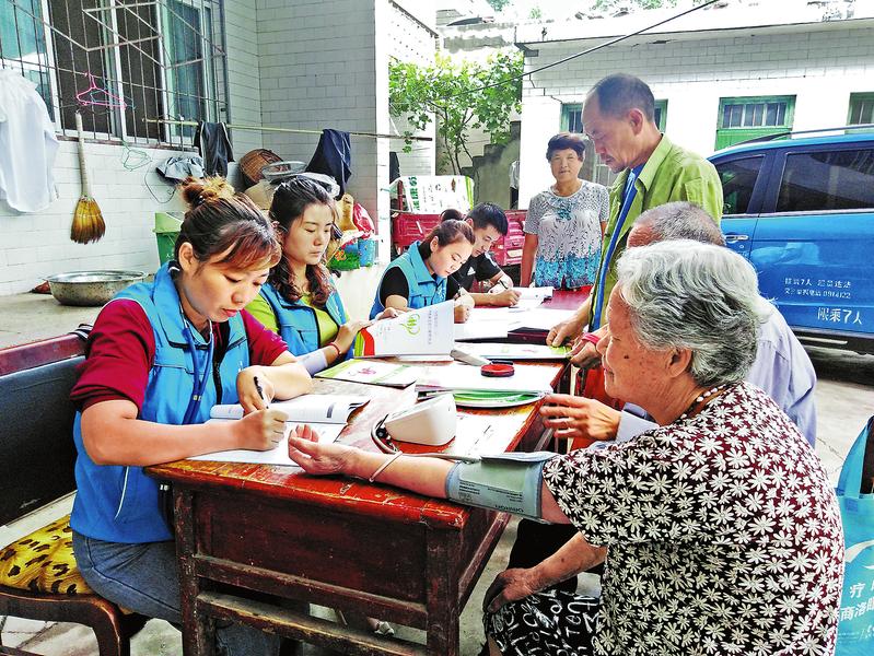 7月12日,商州區夜村衛生院組織8名醫護人員來到夜村鎮李河灘村六組,開展家庭醫生上門簽約服務,給老人量血壓、測體溫、做慢性病檢查。并將轄區內肺結核、精神障礙、心腦血管、高血壓、糖尿病等患者登記造冊,實行簽約服務,確保服務片區群眾慢性病就近治療,為轄區群眾提供了健康保障。(記者 賈書章 攝)