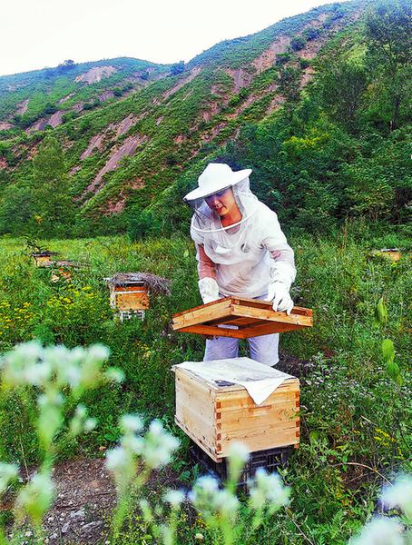 說(shuō)干就干。今年,李偉利先是在村里拜師學(xué)習(xí)養(yǎng)蜂技術(shù)。5月份,他不顧母親和媳婦反對(duì),投資6萬(wàn)多元購(gòu)買了70多箱土蜂和配套的物品,選擇了家鄉(xiāng)附近一條人跡罕至、名叫襄王溝的山溝開始養(yǎng)蜂。“這個(gè)地方是師傅推薦的,因?yàn)閹煾嫡f(shuō)他經(jīng)過(guò)這么多年觀察,襄王溝就是周圍所有蜜源的正中心位置,蜜蜂采蜜時(shí)飛行的距離比較短,工作效率就比較高。加上周圍幾公里都沒(méi)有人居住,是一個(gè)原生態(tài)、純天然、無(wú)污染的好地方。”李偉利說(shuō)。