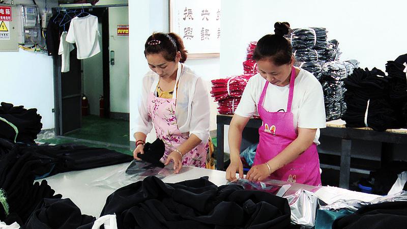徐毅是社區制衣廠的后勤保障人員,也是一位“寶媽”。早上,她安頓好年幼的孩子后,便匆匆下樓上班,主要負責包裝、收貨、發貨等工作,每天忙碌而充實。“每天上班時間從早上8點到下午6點,中午在灶上吃飯。服裝制作是按件計費,干得越多,工資就越高,加班的話一個月就能拿到3500元左右。”徐毅舉手投足間充滿了自信與活力。