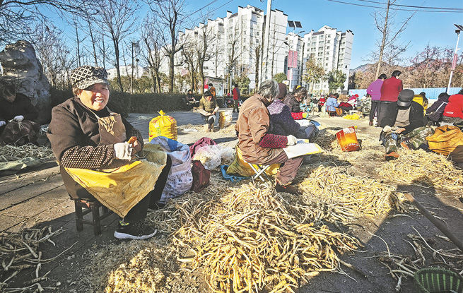 11月29日,商州區沙河子鎮柴灣社區的群眾正在對桔梗去皮加工。據了解,現在正是桔梗收購旺季,藥材種植、收購大戶雇傭當地群眾采收、加工桔梗,為周邊剩余勞動力提供了就業機會,帶動群眾增收。
