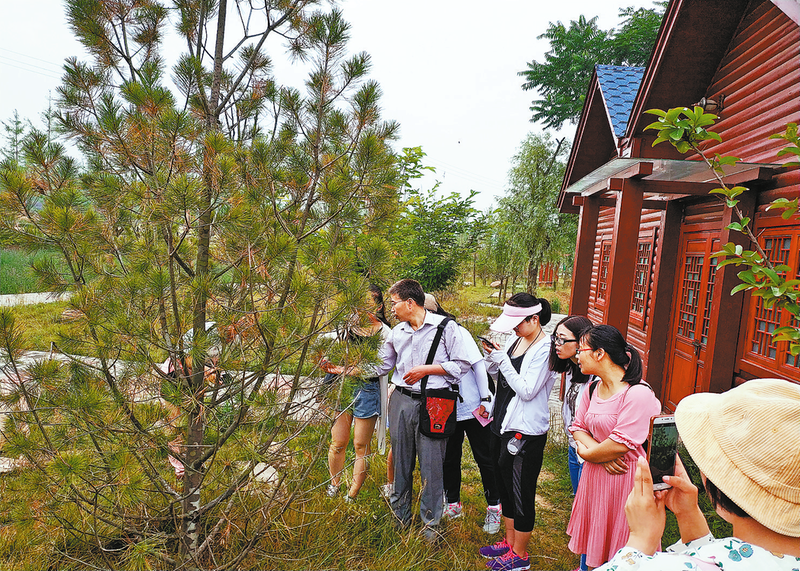 張孝存教授向學生講解商洛溫帶針闊葉混交林的生理特征