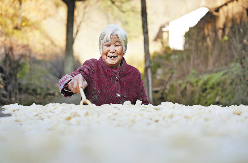 73歲的黃淑慧也是位獨居老人。黃淑慧的娘家在三岔河鎮火神廟村,18歲就嫁過來了,她說,現在住的石板房還是公公手上蓋起來的,有50至60年歷史。黃淑慧育有四兒一女,孩子們都在別處安家了,她的丈夫也于9年前過世,為了打發時間,老人種了一兩畝地,養了18只雞、1頭豬。