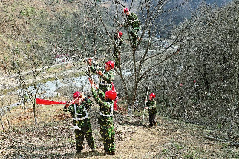 看著騎摩托車?yán)蟠〈謇醯霓r(nóng)民,劉升明想起了去年冬天帶領(lǐng)群眾科管板栗林的情況。冬天的早晨,地面覆上了一層厚厚的霜,凜冽的旬河風(fēng)吹得人瑟瑟發(fā)抖,讓人不愿把攏進袖子、插在口袋的手拿出來。但在先鋒村的南坡上,80多名群眾和兩名科管技術(shù)員散布在60多畝板栗林里,正滿頭大汗地勞作著,他們或爬上樹整形修剪,或拿著耙子耙枯枝落葉,或二三人一組圍著板栗樹擴盤墾復(fù),或四五人一排揮動彎刀砍除灌木,耙子的沙沙聲、彎刀的咔嚓聲和人們的笑語聲構(gòu)成了一曲歡快的勞動進行曲。不久大家就干熱了,有的把棉衣敞開,有的干脆把衣服脫了掛在樹上,身上騰起一縷縷白氣。