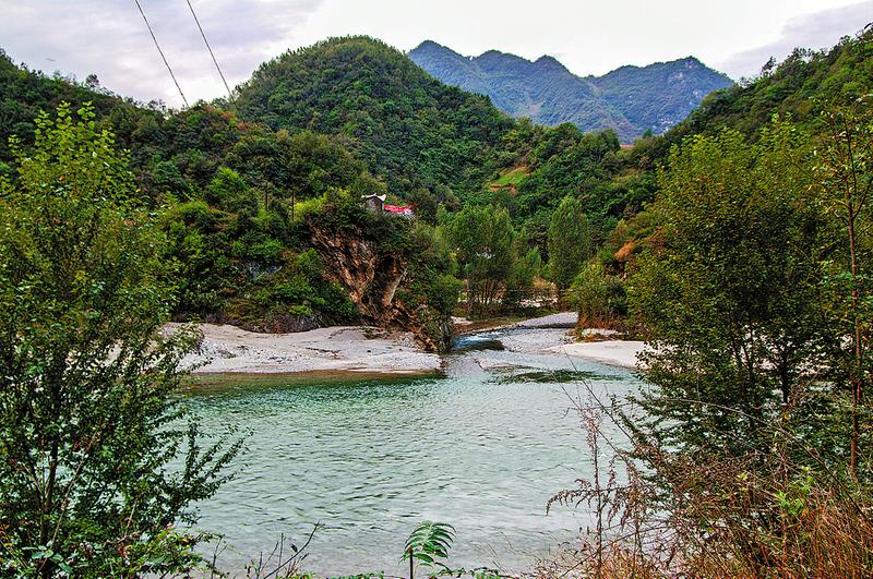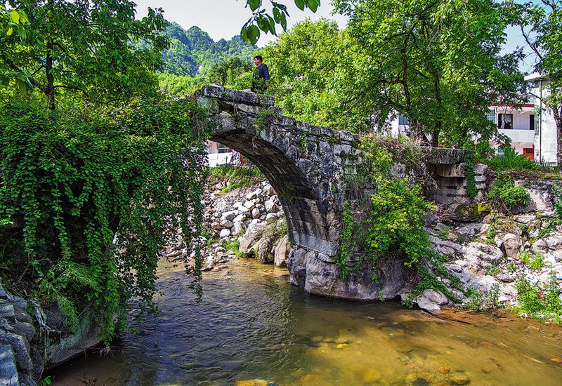 依依惜別龍?zhí)叮傩蕾p沿途的山水風(fēng)光,從火燒橋出四海坪,不遠(yuǎn)就到了文家廟。文家廟一帶自然景觀有蓮花山、犀牛洞,名勝古跡有清代石拱橋、鄒家大院等。