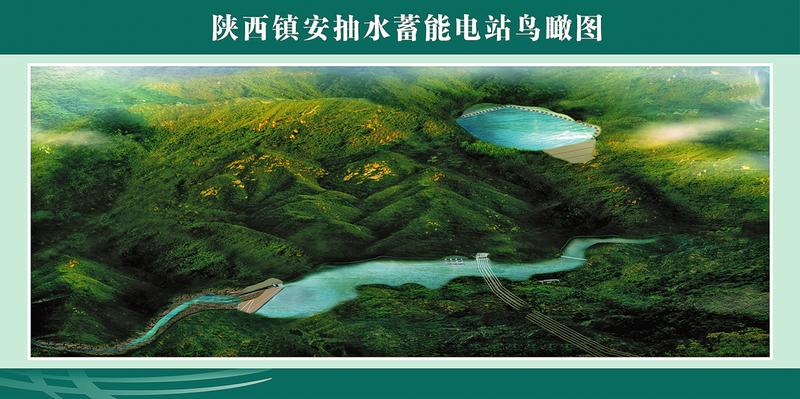 陜西鎮安抽水蓄能電站位于鎮安縣月河鎮,是國家電網公司服務革命老區振興發展、推進能源結構調整和西部大開發戰略實施的重大工程,也是我國西北地區開工建設的首個抽蓄電站工程。該電站由上水庫、下水庫、輸水系統、地下廠房及開關站等建筑物組成,裝機容量140萬千瓦,安裝4臺35萬千瓦可逆式水泵水輪發電機組,設計年發電量23.41億千瓦時,以330千伏電壓接入陜西電網,工程總投資88.5億元,計劃于2023年底投入發電。