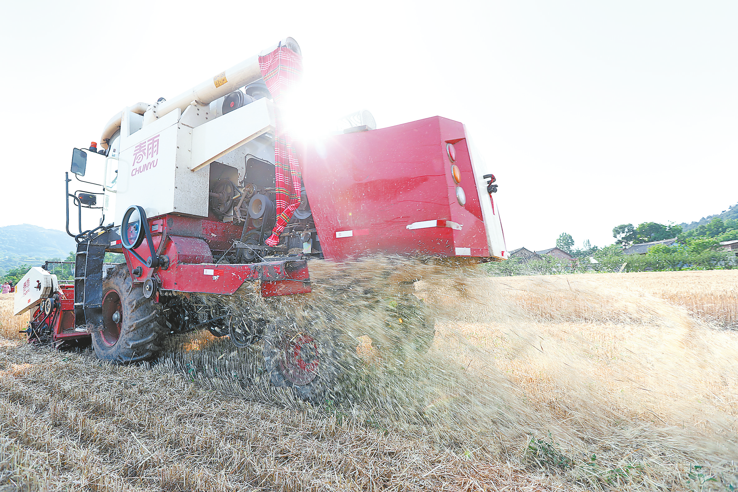 聯合收割 收割、脫粒、粉碎麥稈聯合完成。