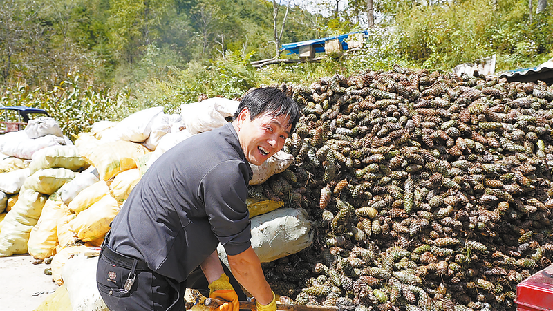 劉由成今年新購置了脫粒機,將收購來的松塔直接加工成松子再外銷,不僅提升了產品附加值,還增加了利潤,也極大地降低了運輸成本。僅靠收購、加工松塔這一項,他和妻子一年的收入就達10多萬元。