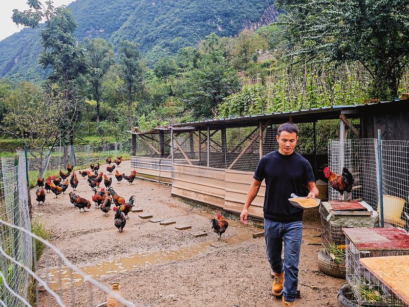 畜牧業是鎮安縣農業經濟的重要支柱。在永樂鎮青槐社區,今年38歲的張永濤正在修繕自家房屋,旁邊的幾座雞舍里,4000多只雞“嘰嘰喳喳”叫個不停。