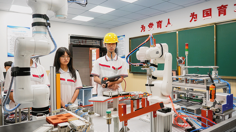 鎮安縣職教中心學生正在學習機械自動化生產操作。